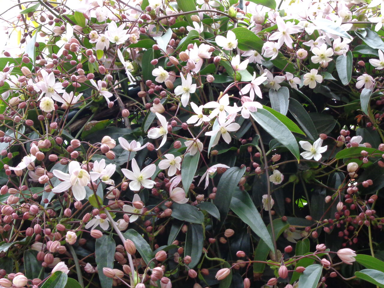 Clematis Armandii Apple Blossom クレマチス アーマンディー アップルブロッサム 埼玉県花と緑の振興センター
